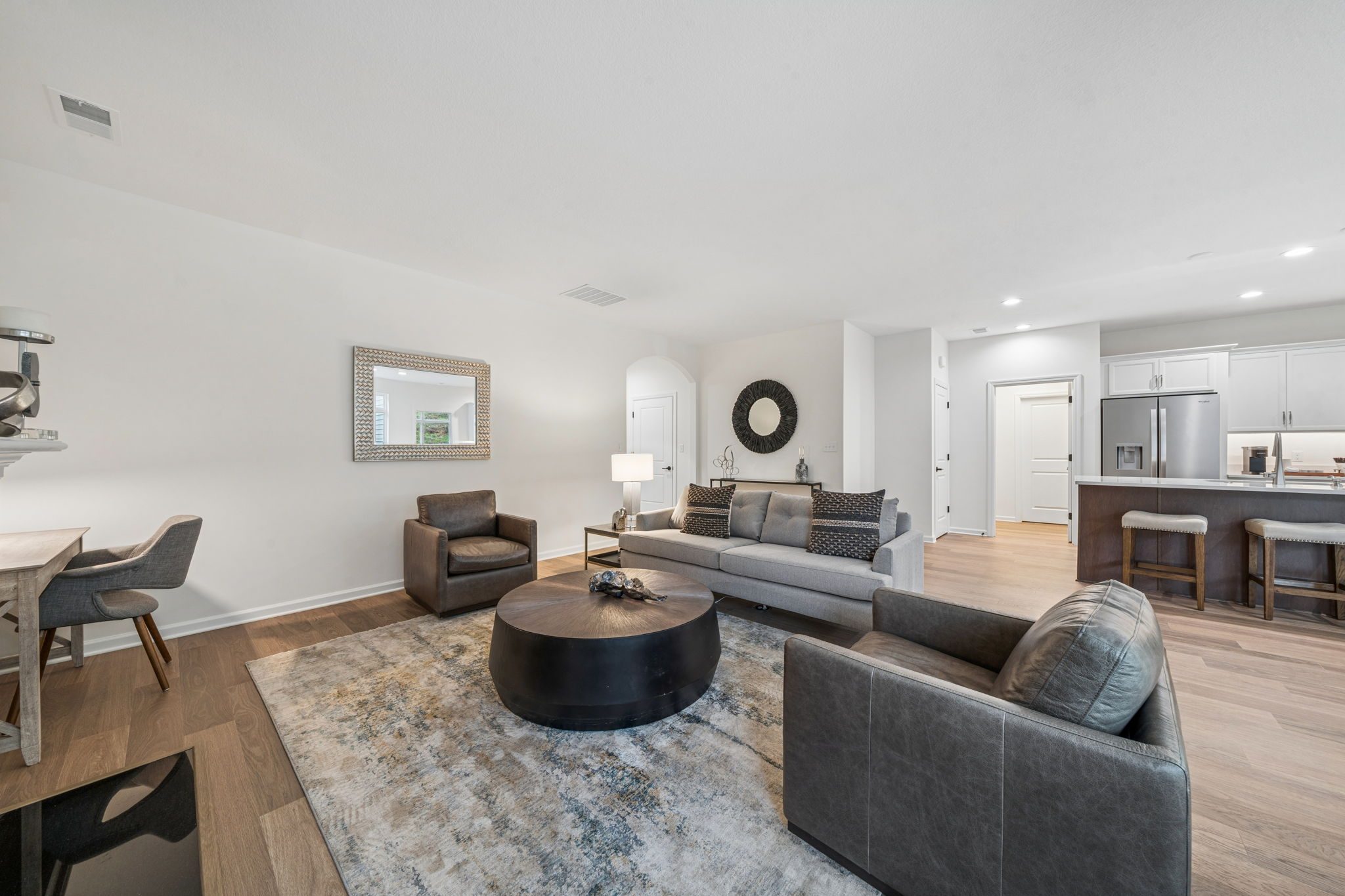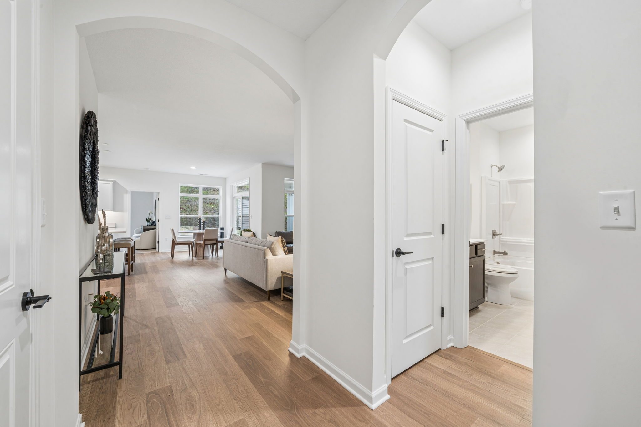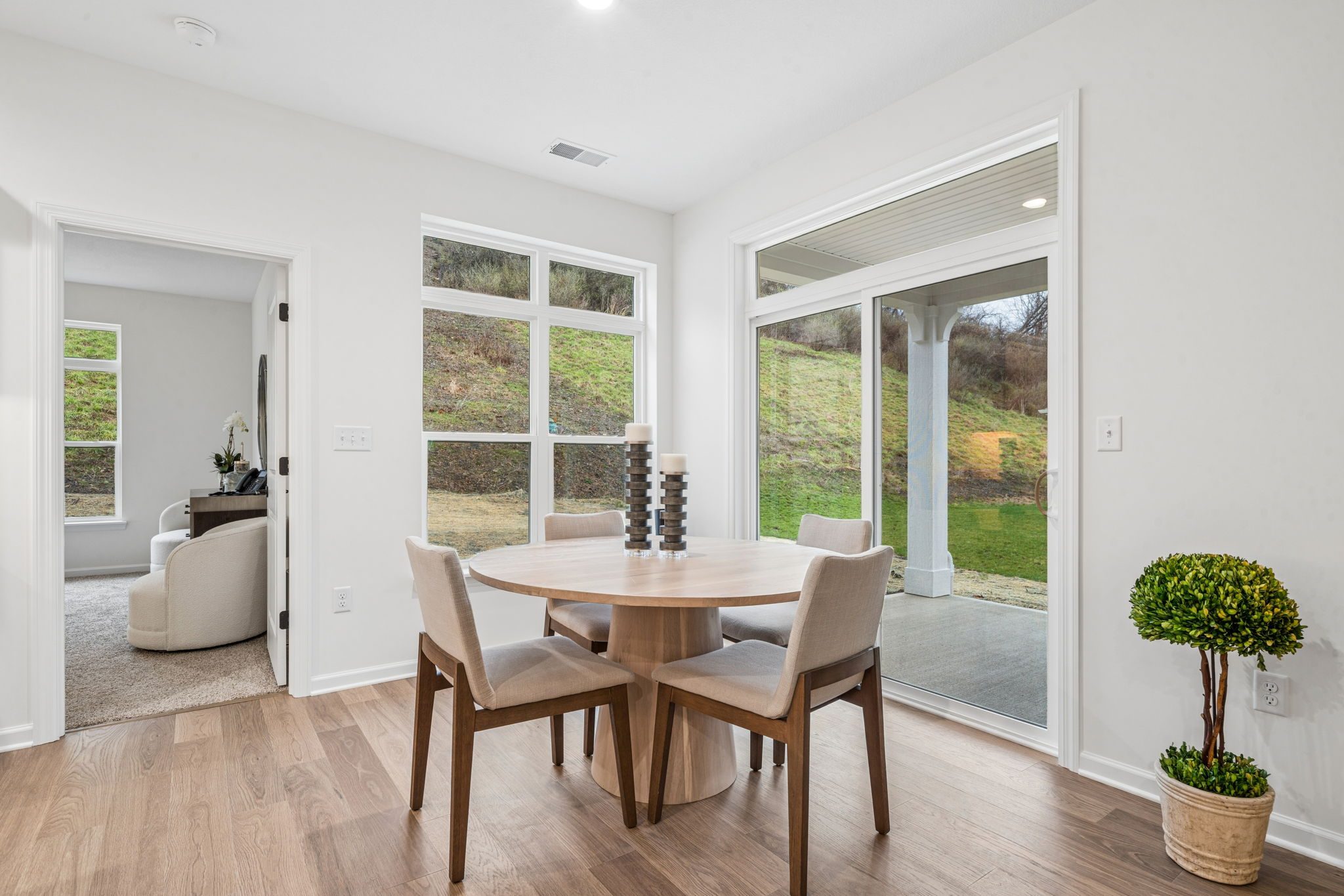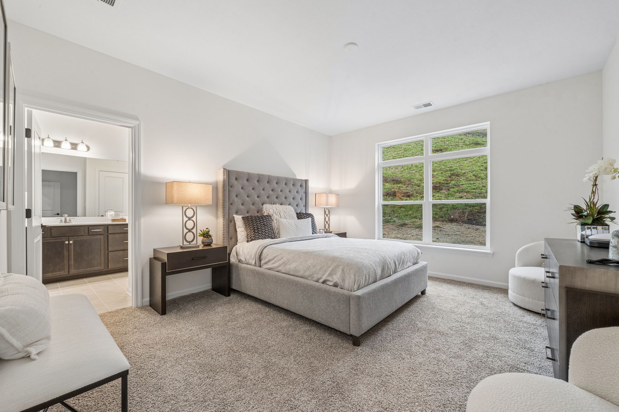 Introducing The Capri quick move-in home at Villas of South Park, a beautifully designed new construction home offering main-level living at its finest. This thoughtfully planned home features a covered porch off the dining room for effortless indoor-outdoor living, while the owner’s suite boasts a zero-threshold walk-in shower for both convenience and luxury.
